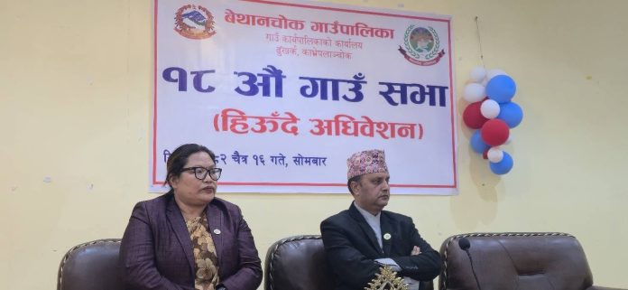 काभ्रेपलान्चोक । बेथानचोक गाउँपालिकाको १८ औं गाउँसभा भव्यरुपमा सम्पन्न भएको छ । सोमबार गाउँपालिकामा सम्पन्न गाउँसभामा बेथानचोक गाउँपालिका अध्यक्ष भगवान अधिकारी, उपाध्यक्ष, प्रमुख प्रशासकीय अधिकृत, वडा अध्यक्षूहरु, गाउँसभा सदस्यहरु, गाउँपालिकाका कर्मचारीहरु उलेख्यरुपमा सहभागिता रहेको थियो ।